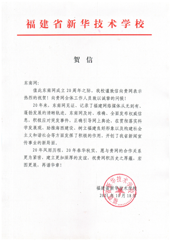 福建省新华技术学校贺信