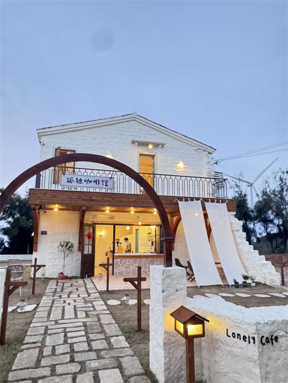 平潭孤独咖啡馆坐落于山海之间的石厝风车下,红檐白墙与无垠海景相映成趣。店内设有孤独杂货区与复古壁炉,营造温馨治愈的休闲氛围;二楼观景窗将泳池、山海尽收眼底,成为游客拍照打卡的静谧角落。清晨薄雾缭绕时,推窗可见仙境般的海岚景致。这里不仅是咖啡飘香的休憩空间,更是一处融合自然景观与慢生活美学的海岛情感驿站。